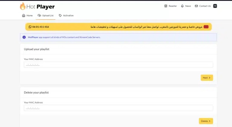 2. Visit the HOT IPTV Website: Go to the link shown in the HOT IPTV app: https://hotplayer.app/upload